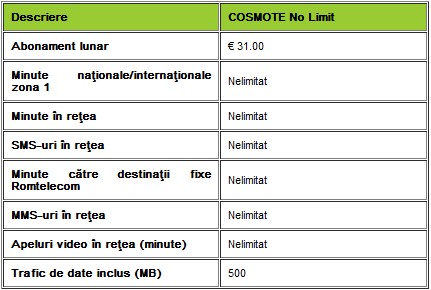 COSMOTE lanseaza astazi abonamentul cu minute nelimitate in orice retea special creat pentru clientii care nu vor sa fie constransi de retelele de telefonie mobila in care efectueaza apeluri. Abonamentul costa 31 Euro cu TVA, si conform tabelului de mai jos aveti minutele nationale si chiar Internationale din Zona 1 nelimitate.