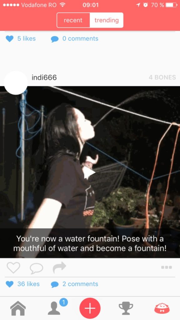 Deci prietenii îți vor trimite provocări, iar tu va trebui să le îndeplinești. Înțeleg că sunt și competiții organizate de către Double Dog,