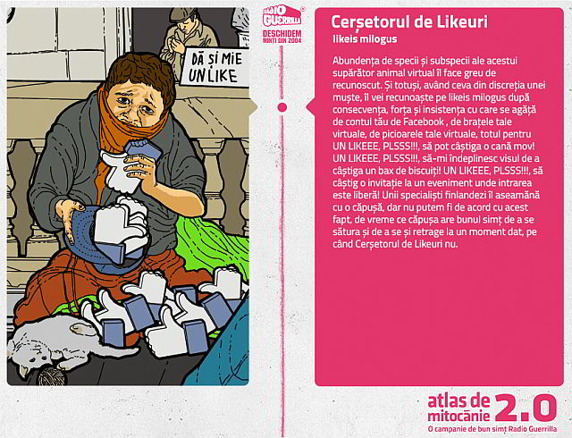 In ultima perioada ascult mai des Radio Guerilla au emisiuni bune si muzica buna, si de cateva zile ruleaza campania Atlas de Mitocanie 2.0 ca urmare a nebuniei care are loc in Social Media si in special pe Facebook. Like-uri, adaugari in grup, imagini neinteresante postate pe Wall, concursuri, sunt doar o parte dintre lucrurile deranjante pentru utilizatorii retelelor de socializare. (Va recomandam urmatoarele unelte anti-spam: Unfriend, Unsubscribe, Don’t Show on News Feed, Show only… , etc.)