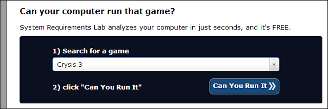 Asadar tool-ul care detecteaza automat se numeste Can You Run It? si este un site unde intri, iti instaleaza o mica componenta de sistem pentru a permite accesul la specificatii si nu trebuie de aici decat sa alegi jocul care te intrebi daca merge sau nu. Mai nou au si o aplicatie Desktop daca nu va place sa-l rulati pe site prin Java.
