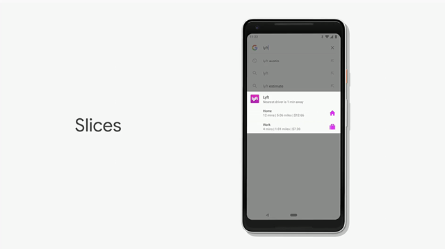 La Slices este ușor diferit. Vor fi mici butoane cu acțiuni specifice pe care le întreprinzi frecvent în aplicații. Dacă folosești o aplicație de fitness atunci poate cel mai accesat buton va fi de începere al unui antrenament, sau dacă asculți frecvent un playlist în Spotify probabil îți va recomanda acel playlist.