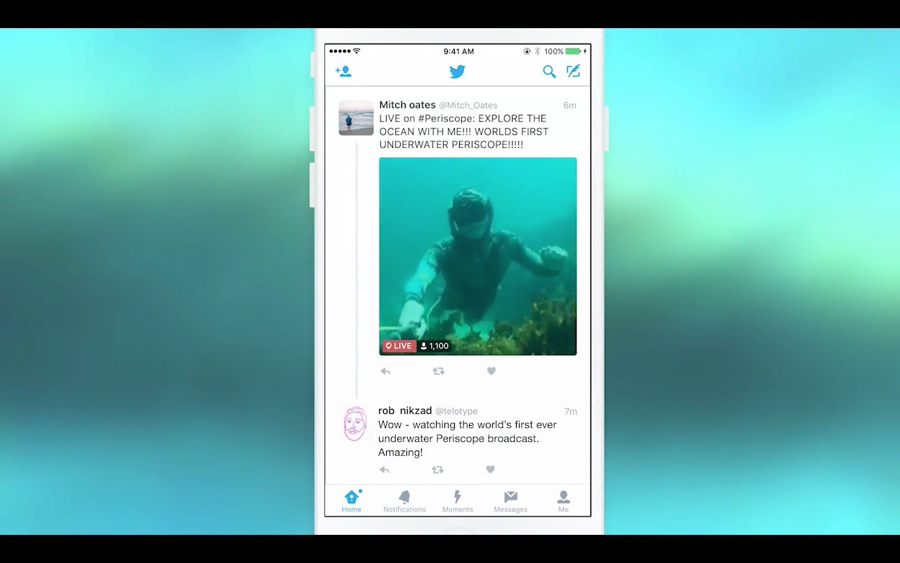 Începând de astăzi va porni automat un videoclip Periscope când dai peste el pe Twitter wall, fie live, fie înregistrat. Nu vă faceți griji nu va porni și sunetul automat însă este făcut să-ți poți da seama direct din imagini ce se transmite live acolo.