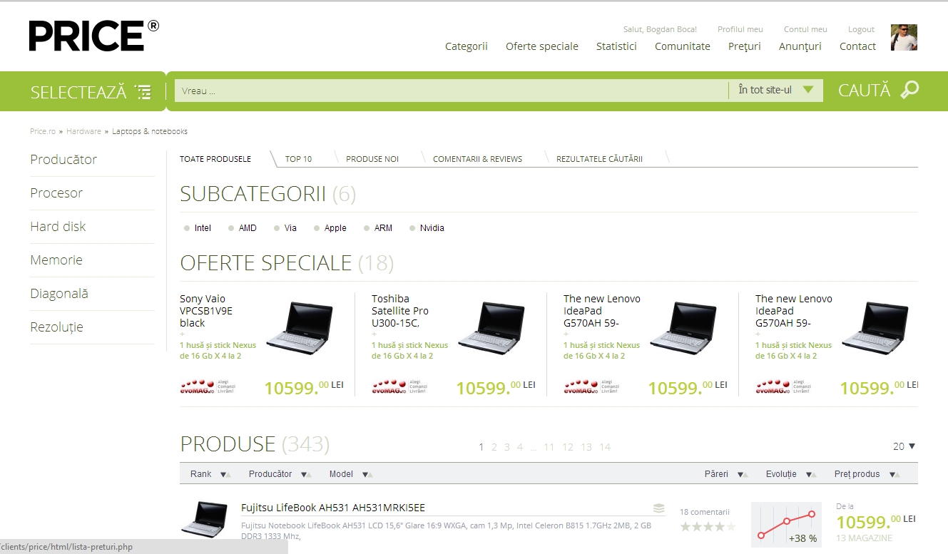 Cautam recent ceva pe Internet si din Google am accesat un link care ducea catre Price.ro. Am ramas uimit crezand ca Price.ro a dat drumul la un nou webdesign mai curat, mai bine aranjat si care acum contine putin mai multe informatii. Problema e ca daca intrati pe www.price.ro nu duce catre noul design.