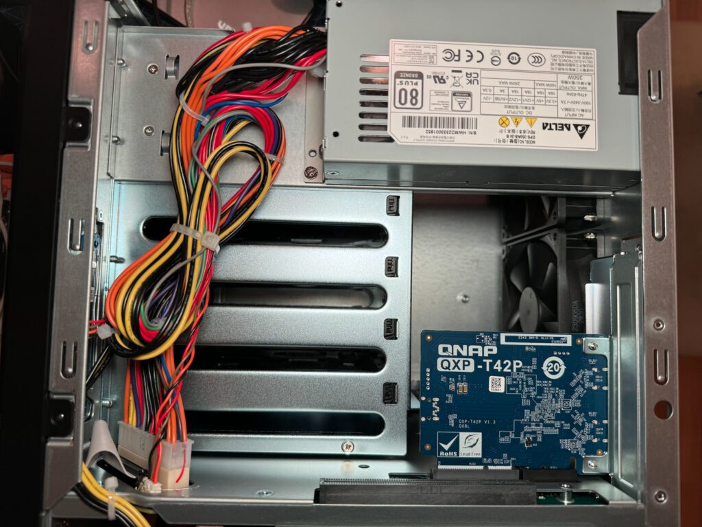 - 2x sloturi PCI-e care îți vor permite să adaugi și mai multă funcționalitate NAS-ului cu conexiuni de 10 – 25 sau chiar 100 Gbps dacă crezi că vei avea nevoie.