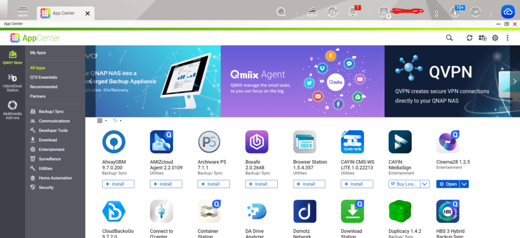 QNAP nu ajungea să fie compania de astăzi fără suport pentru produsele create și bineînțeles fără software bun, așadar pe lângă ce aplicații sau servicii sunt preinstalate poți apela la magazinul lor de aplicații. Este o scurtătură pe desktop către aceasta.