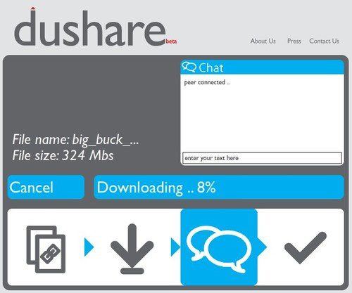 De acum pana pe 11 / 12 septembrie la sfarsitul vacantei chiar ca nu mai scriem nici un articol. Daca doriti sa transferati un fisier unui prieten si prin messenger nu merge ori fisierul este prea mare pentru email sau trimiteti fisierul cuiva care are un firewall. Intrati pe , unde puteti transfera in mod peer-to-peer prin intermediul browserului atat de repede pe cat merge sa uploadezi prin conexiunea ta. Dushare face procesul de transfer de date intre 2 computere extrem de simplu. Intrati pe , alegeti fisierul, alegeti daca doriti o parola pentru a proteja transferul, si apoi transmiteti mini link-ul prietenului tau. Daca pot intra pe o pagina web si sa downloadeze un fisier oarecare inseamna ca pot lua si fisierul pe care il trimiti tu. deasemenea include si o functie de chat, pentru a putea comunica cu acea persoana in lipsa messengerului. Dushare este un serviciu gratuit si nu necesita crearea unui cont, insa cel mai important lucru este ca fisierele nu au limita de marime pentru ca datele in acest caz nu sunt puse mai intai pe server si dupa asta se iau de pe server ci se iau direct de la un calculator la altul.